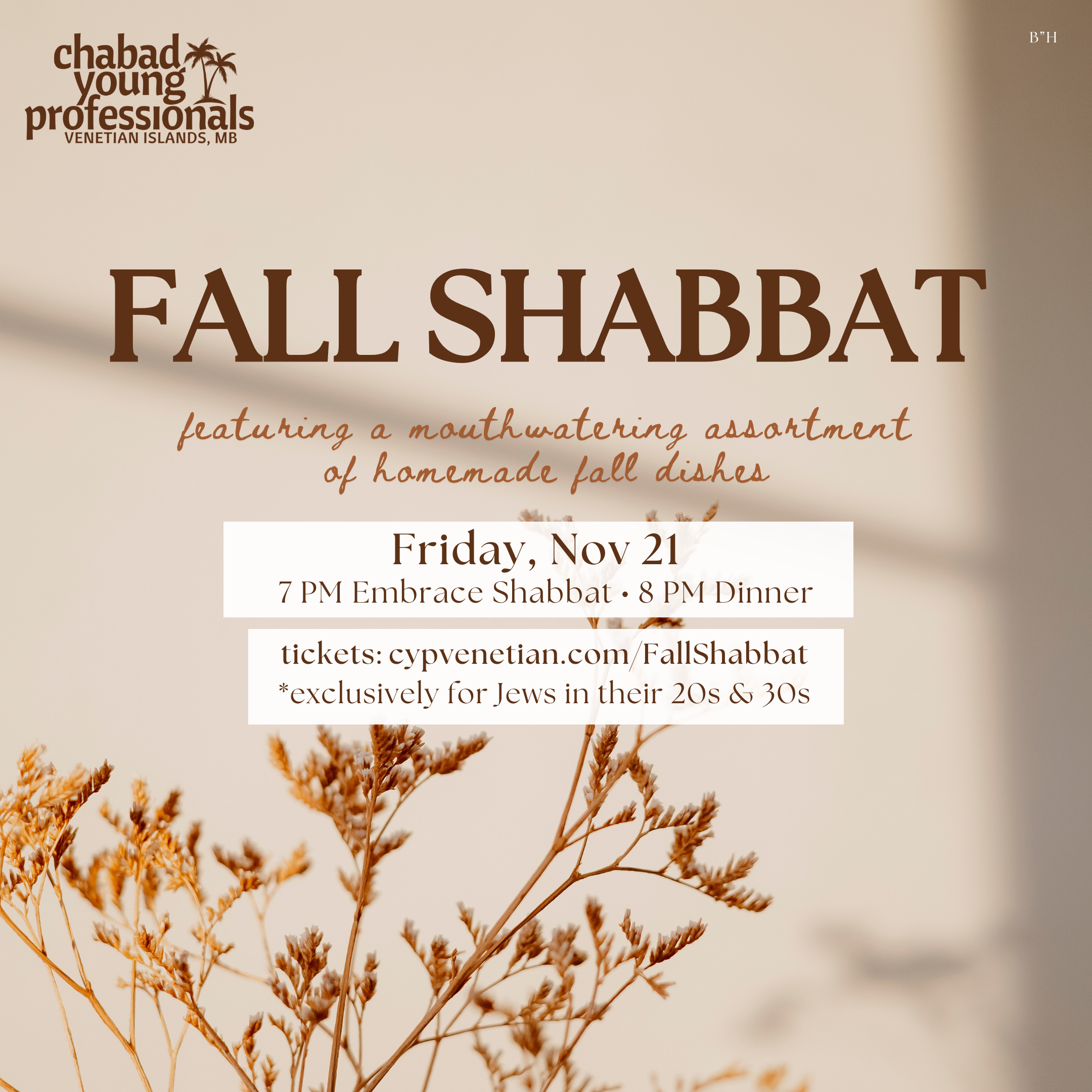 Come enjoy a wonderful Shabbat experience with fellow young Jews as we savor homemade mouthwatering fall dishes & fine wines.